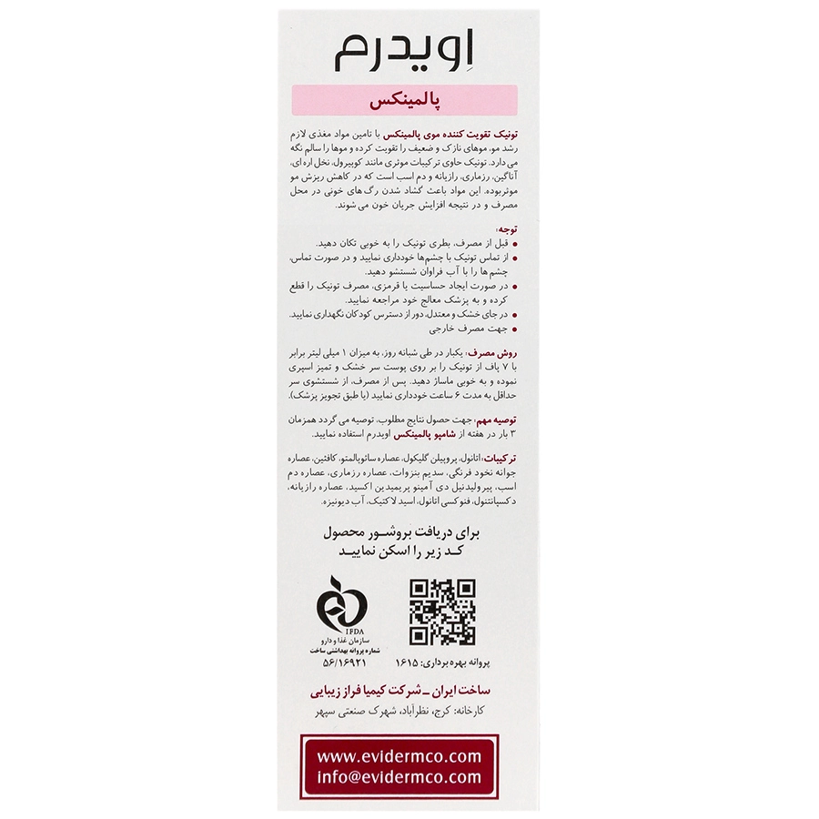 توصیه مهم: جهت حصول نتایج مطلوب، توصیه می گردد همزمان 3 بار در هفته از شامپو پالمینکس اویدرم استفاده نمایید.