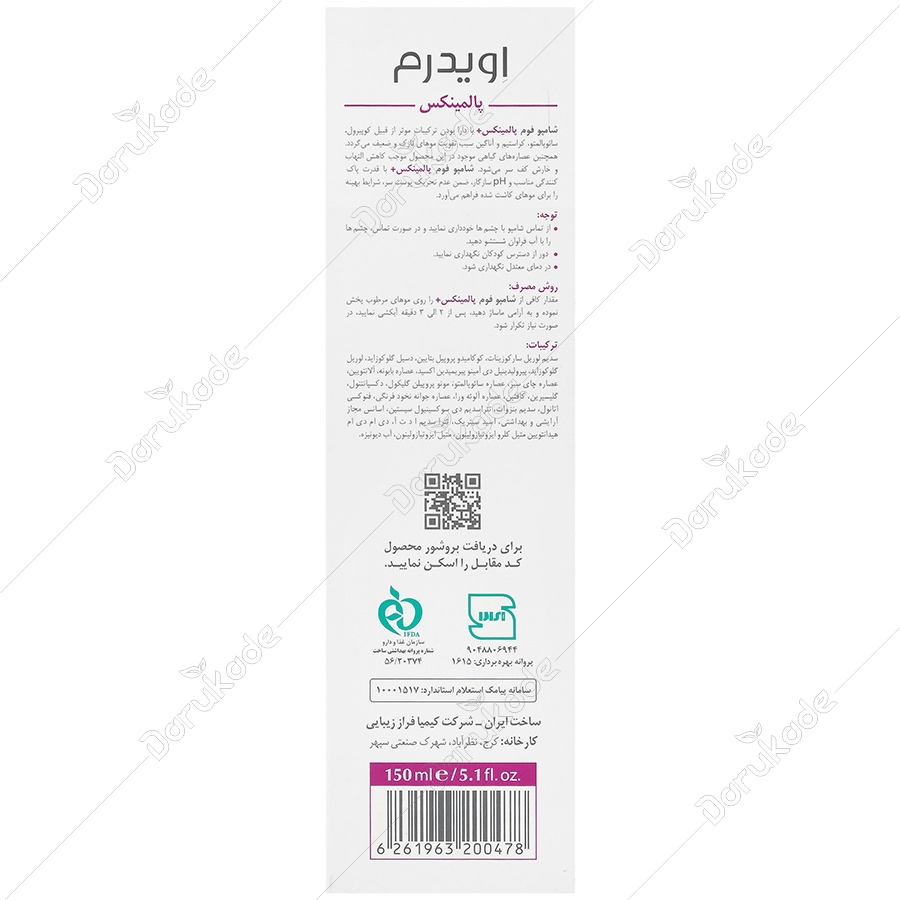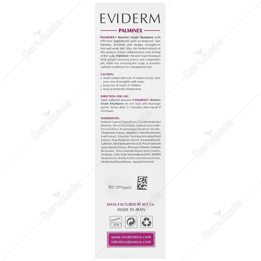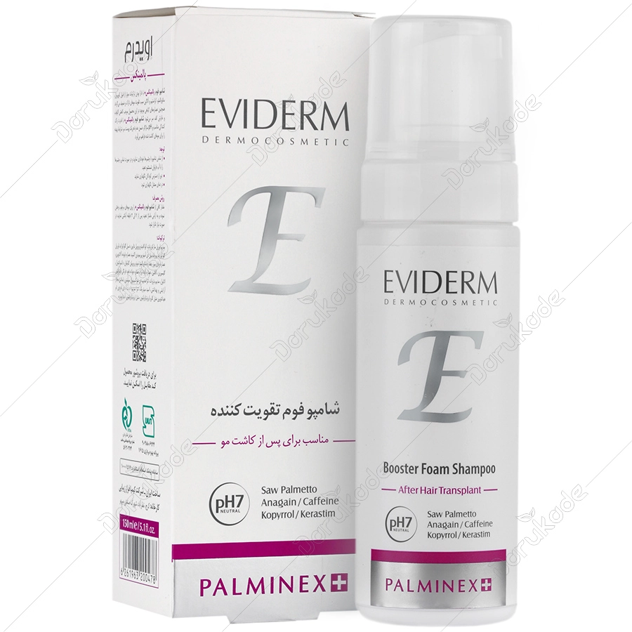 شامپو فوم پالمینکس+ اویدرم با دارا بودن ترکیبات موثر از قبیل آناگین، آمینکسیل، سائوپالمتو و کراستیم از ریزش مو های کاشته شده جلوگیری کرده و موجب تقویت و استحکام پیاز مو می شود. همچنین عصار های گیاهی موجود در این محصول موجب کاهش التهاب و خارش و کنترل ترشح غدد چربی کف سر می شود. این شامپو با قدرت پاک کنندگی مناسب و PH سازگار با موهای پیوند شده ضمن عدم تحریک پوست سر شرایطی مناسب برای مو های کاشته شده فراهم می کند.
