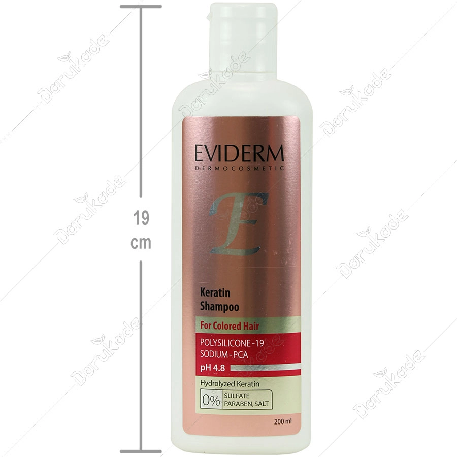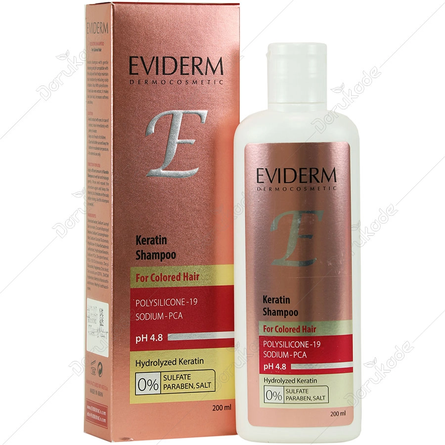 شامپو حاوی کراتین موهای رنگ شده اویدرم، بدون سولفات، پارابن و نمک بوده و با شویندگی ملایم و PH سازگار با پوست سر و مو سبب حفظ رطوبت ساقه و کاهش تحریک پذیری پوست سر می شود. همچنین با داشتن پلی سیلیکون 19، پروتئین هیدرولیز شده، بیوساکارید گام 1 و عصاره آلوئه ورا سبب ماندگاری رنگ مو، بهبود کراتین سازی، افزایش نرمی و درخشش ساقه مو می گردد.