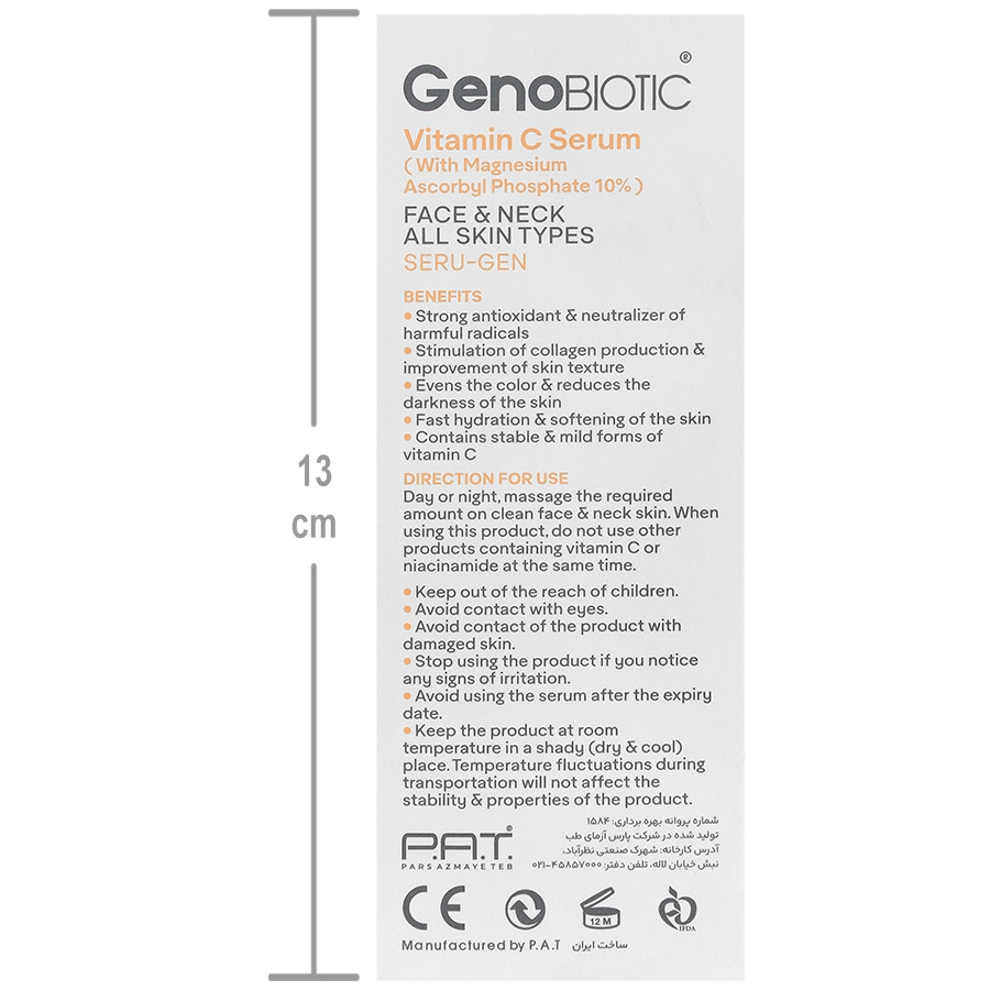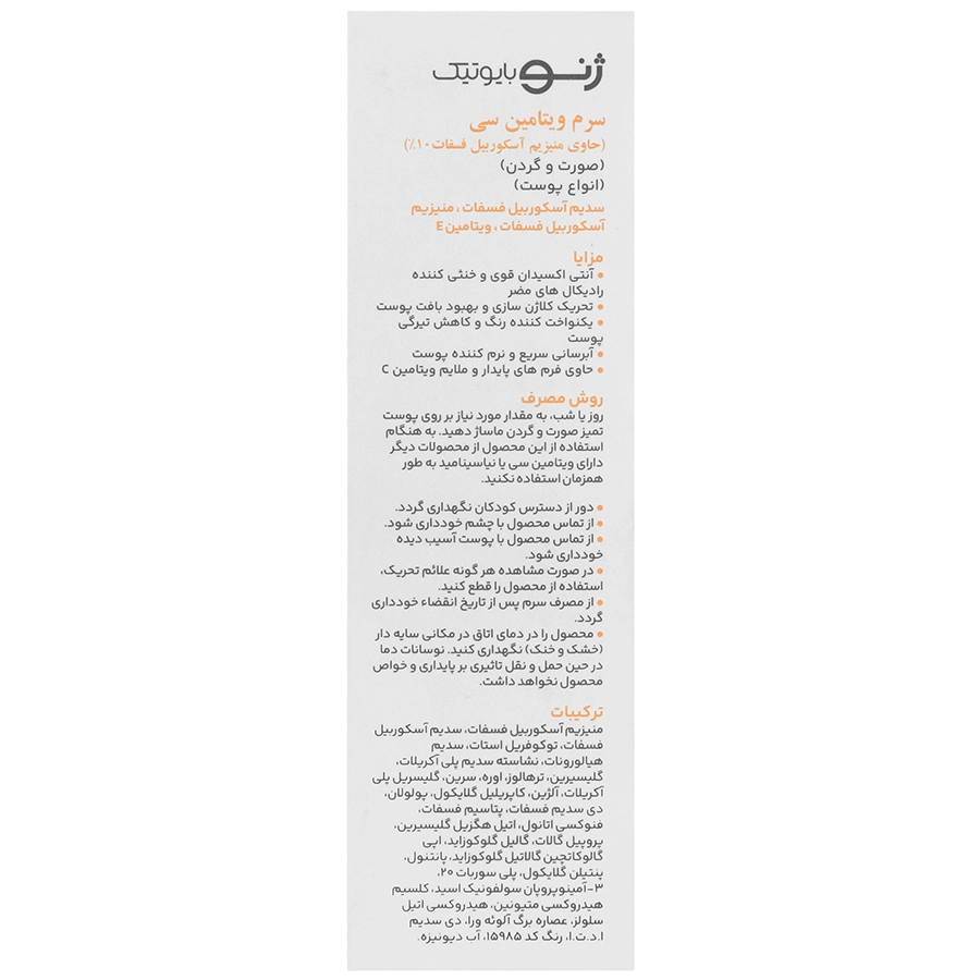 سرم ویتامین سی (حاوی منیزیم آسکوربیل فسفات 10%) (صورت و گردن) ژنوبایوتیک: