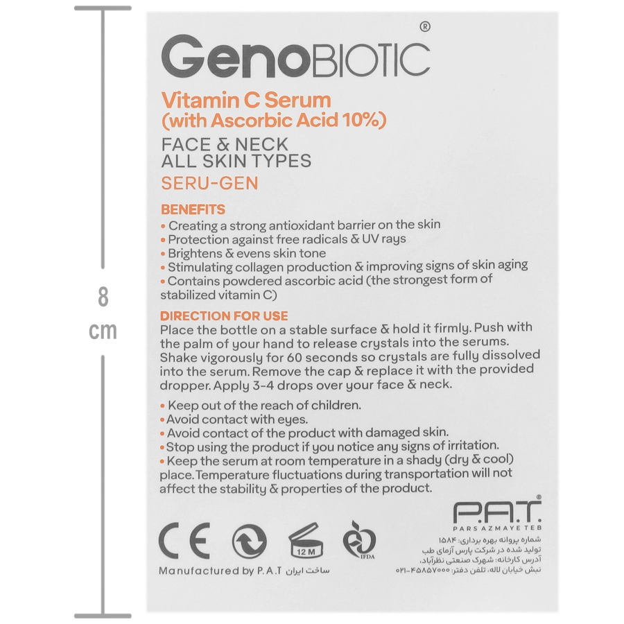 سرم ویتامین سی (حاوی آسکوربیک اسید 10%) (صورت و گردن) ژنوبایوتیک: