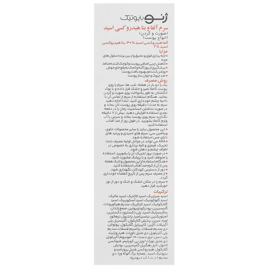 سرم آلفا و بتا هیدروکسی اسید (صورت و گردن) ژنوبایوتیک: