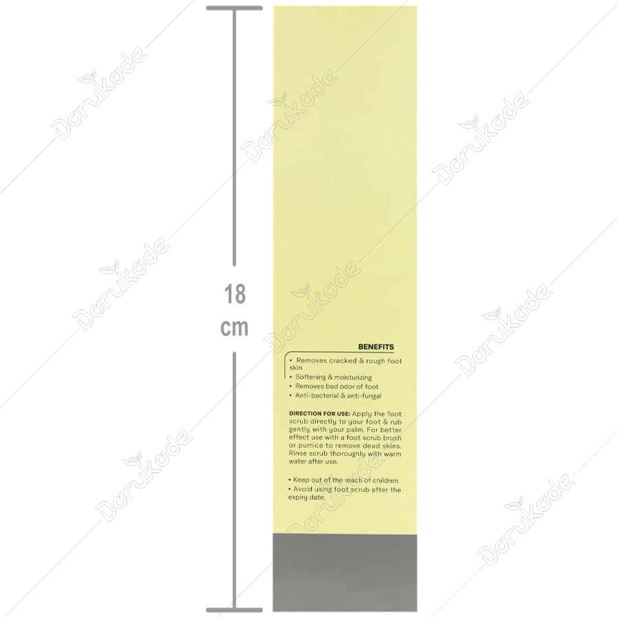 اسکراب را مستقیماً روی پای خود بمالید و به آرامی با کف دست ماساژ دهید و سپس با آب گرم، آبکشی نمایید. برای از بینبردن پوستهای مرده توصیه میگردد قبل از آبکشی از سنگ پا یا سوهانهای مخصوص پا استفاده نمایید.