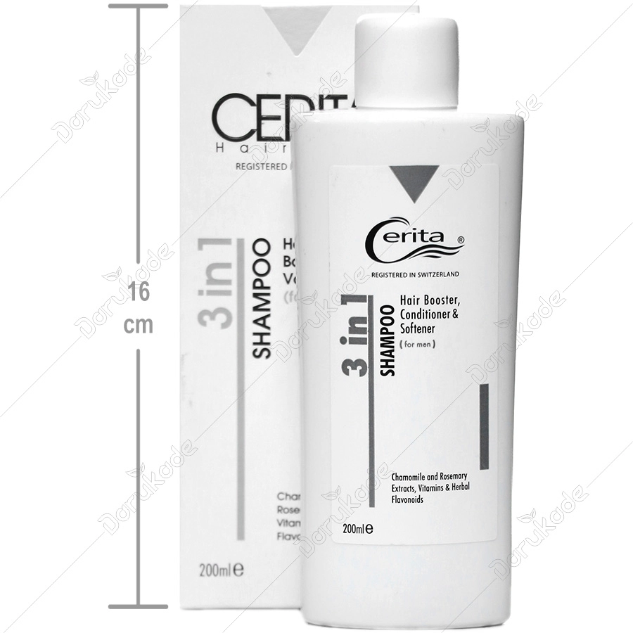 شامپو 3 در 1 سریتا (مناسب آقایان) دارای ترکیب ویژه ای از عصاره های گیاهی، ویتامین ها و آنتی اکسیدان طبیعی، با رایحه ای دلپذیر، مواد مورد نیاز جهت رشد مو را در اختیار فولیکول مو قرار داده و باعث سلامت ریشه مو، لطافت، زیبایی، درخشندگی و حالت پذیری تارهای مو می گردد.