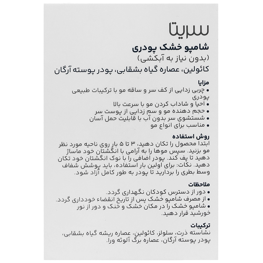 شامپو خشک پودری سریتا (بدون نیاز به آبکشی)