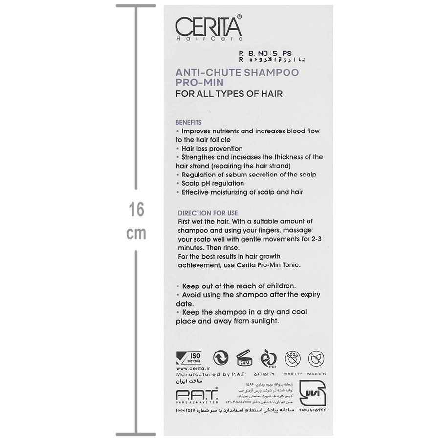 شامپو پرو مين سريتا، فرمولاسيونى كارآمد براى تحريک رشد و تقويت فوليكول هاى مو است. اين شامپو با مهار عوامل ريزش، نقش مهمى در پيشگيرى از ريزش مو دارد، علاوه بر اين با تقويت فوليكول هاى مو باعث رويش مجدد تارهاى مو مى شود.