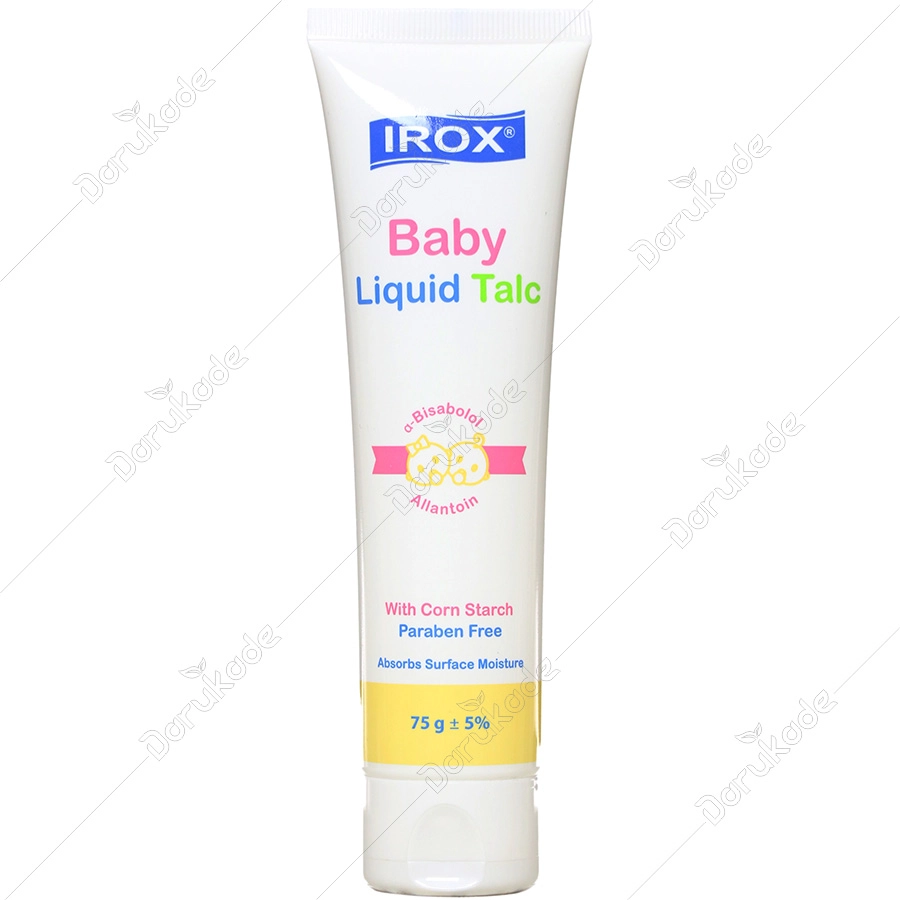 کرم تالک مایع کودک ایروکس با فرمولاسیون ویژه پس از استفاده بلافاصله تبدیل به پودر تالک می شود و عوارض جانبی ناشی از استنشاق پودر های تالک معمول را ندارد. این محصول با جذب رطوبت سطح پوست و ایجاد حالت ابریشمی از اصطکاک پوست در نواحی چین دار بدن جلوگیری می کند و مانع از عرق سوز شدن این نواحی می شود.