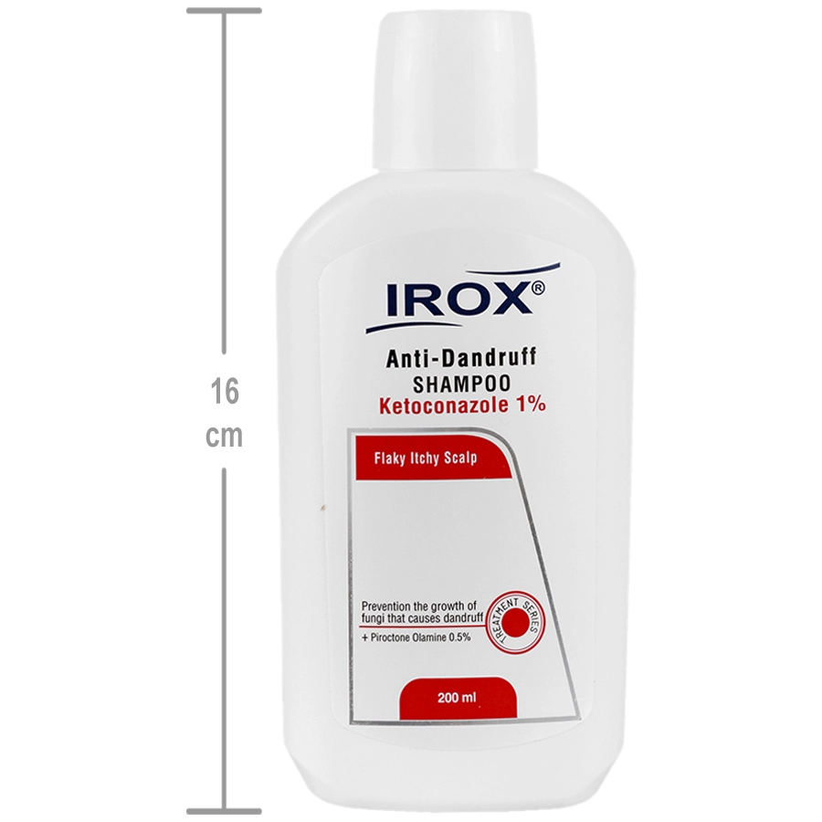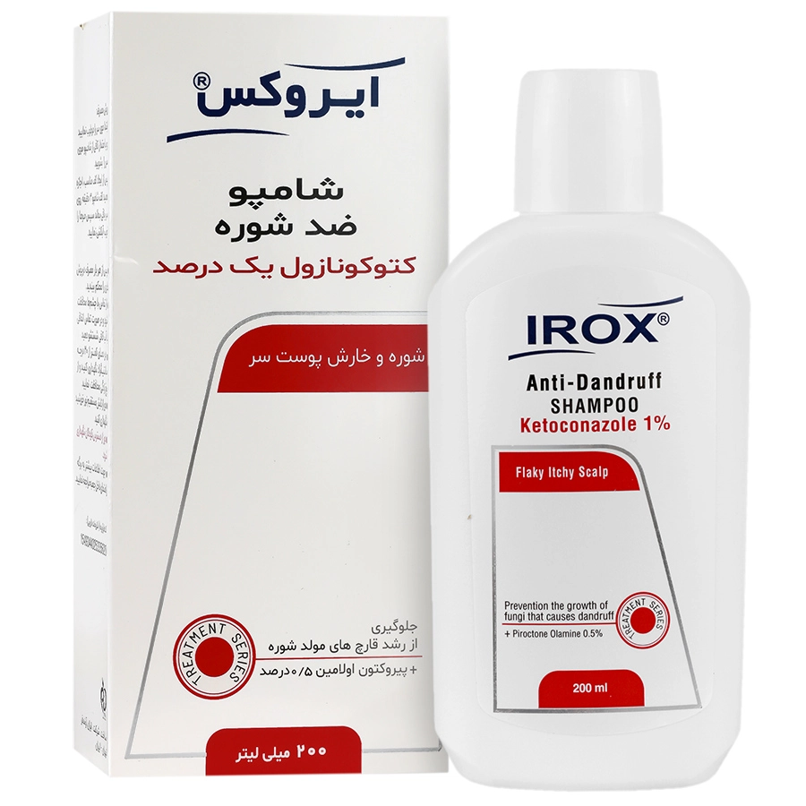 شامپو ضد شوره ایروکس حاوی کتوکونازول، پیروکتون اولامین و سایر مواد در ترکیب خود است که با اثر ضد قارچی جهت درمان و جلوگیری از رشد قارچ های مولد شوره سر کاربرد دارد و می تواند التهاب های ناشی از شوره سر، خارش و قرمزی پوست سر را نیز کاهش دهد.