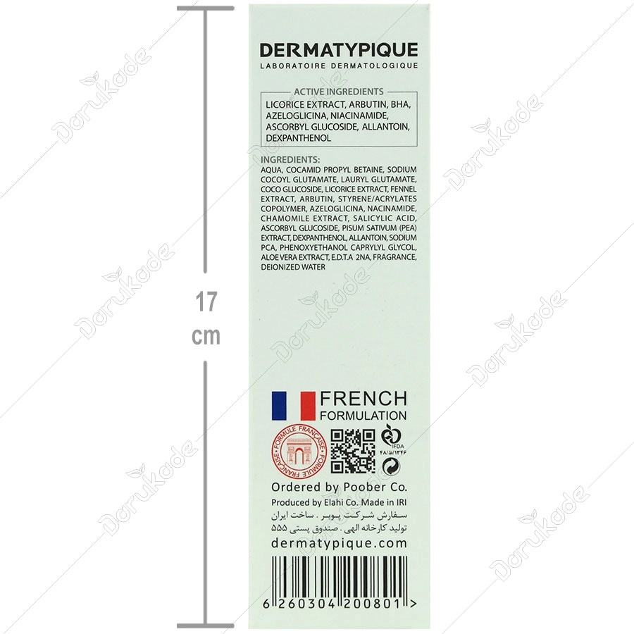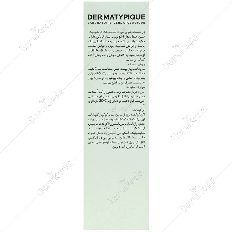ژل شست و شوی صورت پوست لک دار درماتیپیک، ضمن حفظ تعادل PH پوست، تمام آلودگی ها را به ملایمت پاک و تمیز می کند. جهت رفع نا هماهنگی رنگ پوست و افزایش شفافیت چهره با عوامل ضد لک فرموله شده است. همچنین به واسطه BHA و آزیلوگلایسینا به کاهش جوش و اسکار های آکنه کمک می نماید.