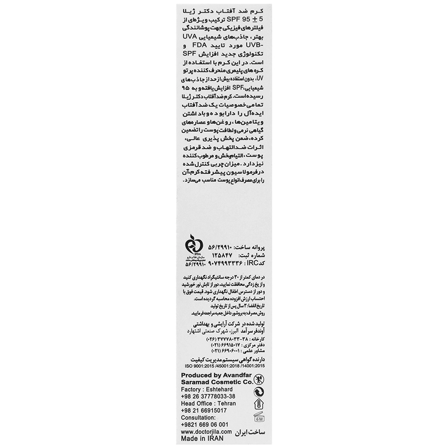 • کرم ضد آفتاب دکتر ژیلا spf 95، مقاوم در برابر آب و تعریق