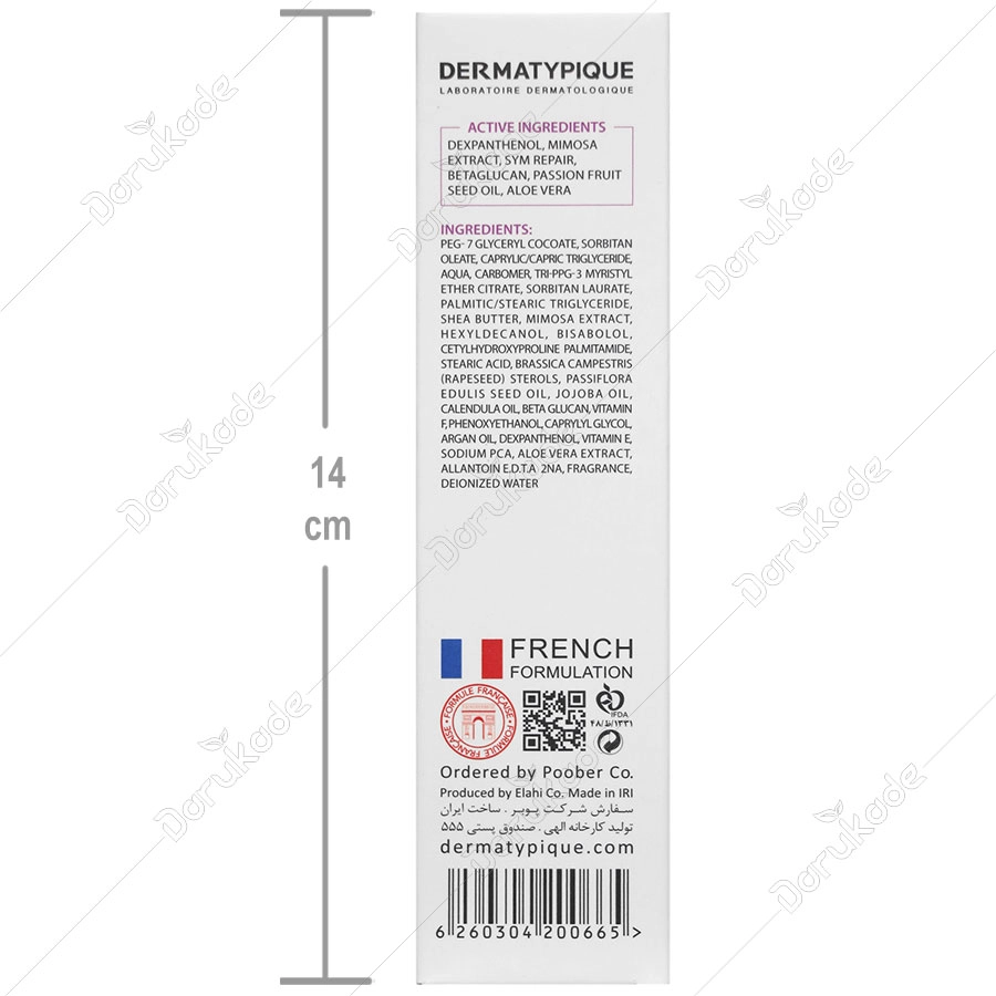 کرم ترمیم کننده درماتیپیک با مجموعه منحصر به فردی از ترکیبات بازسازنده، بر تمام مراحل روند ترمیم پوست اثر می کند. همچنین التهابات را التیام می بخشد و سبب افزایش روند بازسازی پوست پس از سوختگی ها، لیزر، میکرونیدلینگ، میکروبلیدینگ، آر.اف و کرایوتراپی می شود.