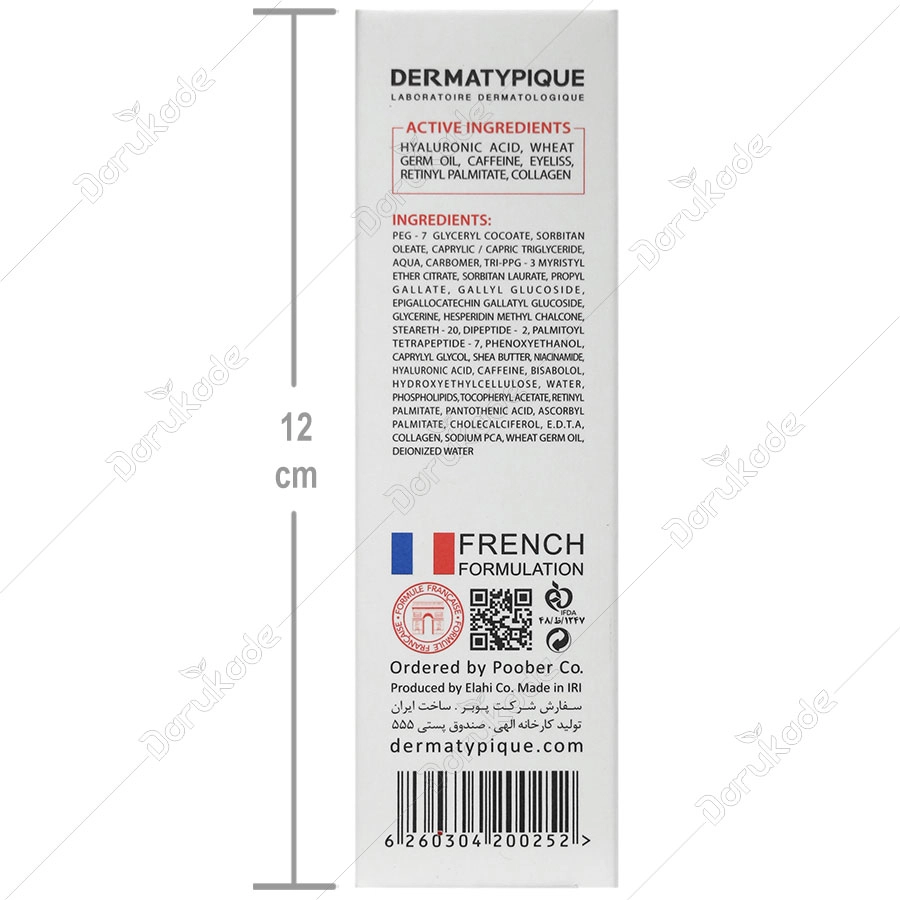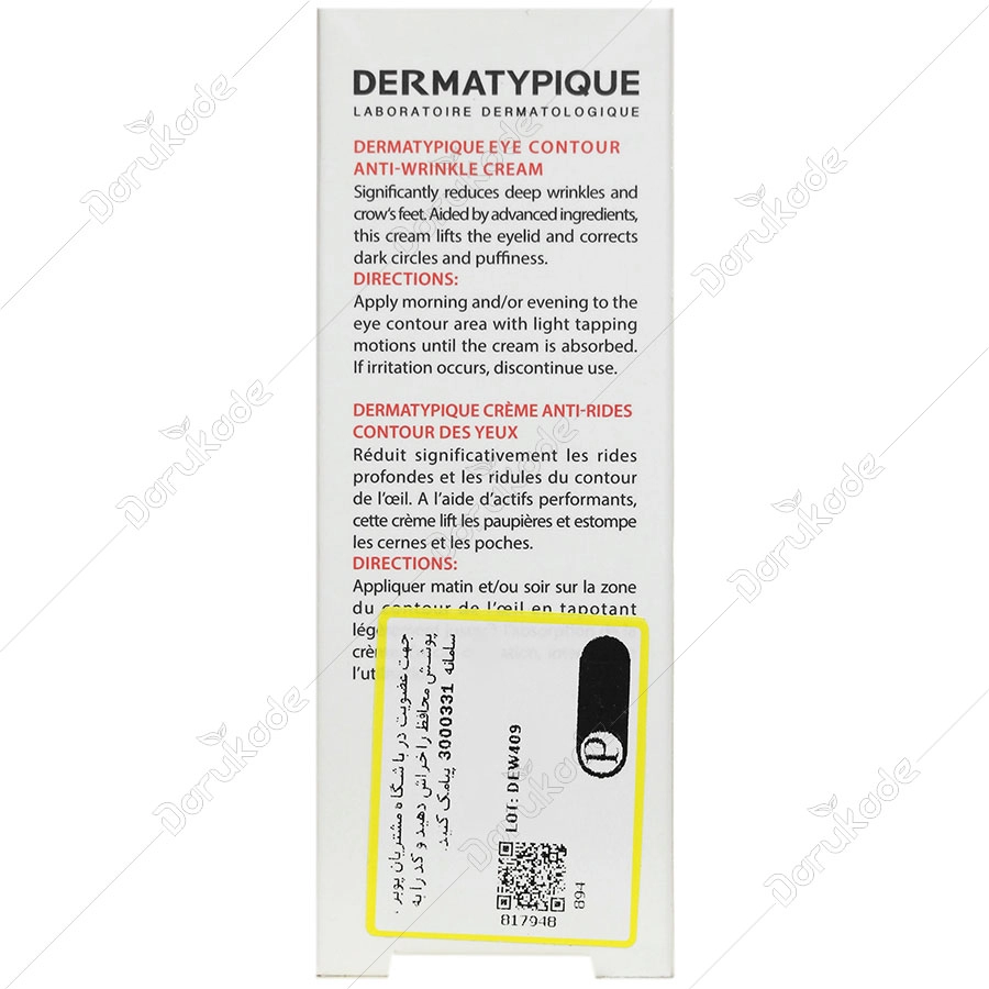 کرم دور چشم ضد چروک درماتیپیک سبب کاهش چشمگیر چروک های عمیق و خطوط گوشه خارجی چشم می شود. به کمک ترکیبات پیشرفته، این کرم سبب لیفتینگ پلک و رفع تیرگی و پف می گردد.