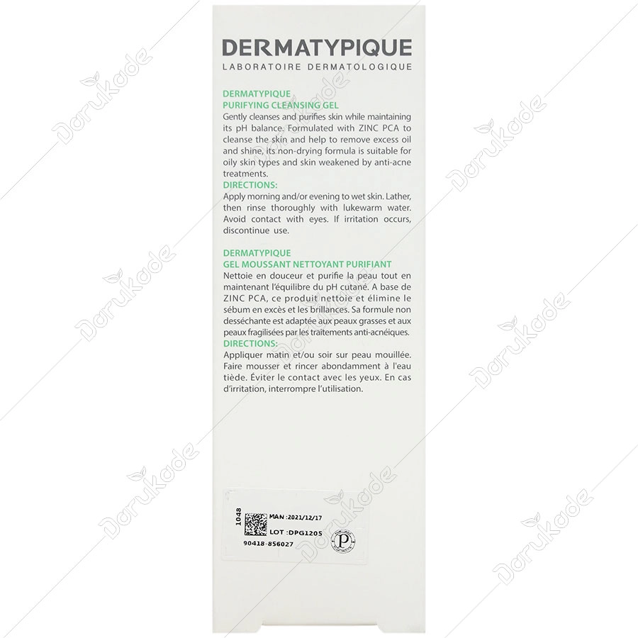 ژل شوینده پوست چرب درماتیپیک، پوست را ضمن حفظ تعادل PH به ملایمت پاک و تمیز می کند. فرموله شده با زینک پی سی ای جهت پاک کردن پوست و کمک به رفع چربی اضافی و براقی پوست است. فرمول آن که اثر خشک کننده ندارد برای پوست چرب و پوستی که از درمان ضد جوش آسیب پذیر شده است، مناسب می باشد.