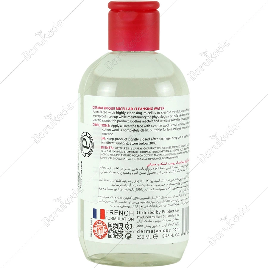 محلول پاک کننده آرایش درماتیپیک پوست خشک و حساس با عوامل پاک کننده قوی فرموله شده است تا ضمن حفظ PH فیزیولوژیک، بدون تغییر در تعادل لایه محافظ پوست حتی آرایش ضد آب را پاک کند. به کمک ترکیبات خاص، این محصول ضمن التیام بخشیدن به پوست حساس، رطوبت پوست را افزایش می دهد.