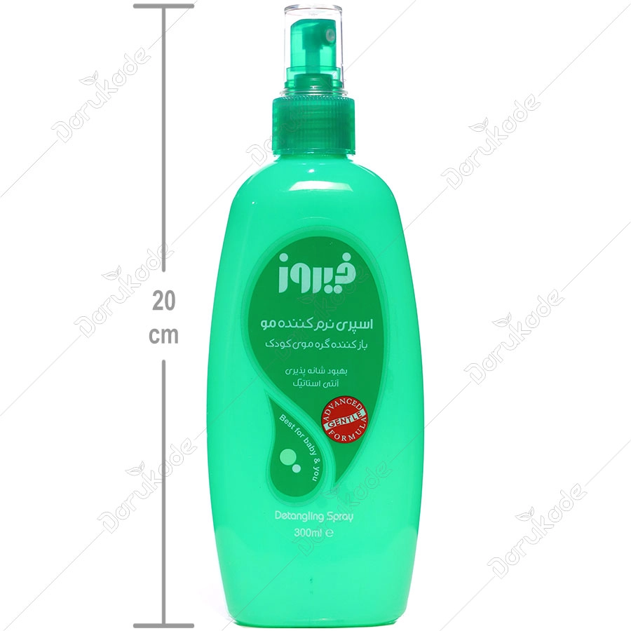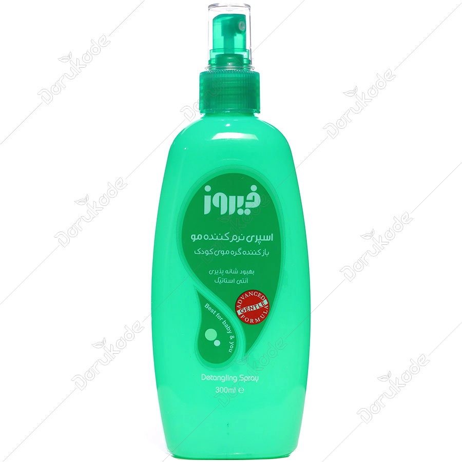 موی نازک کودکان به دلیل ظرافت و نازکی خیلی سریع گره خورده و به هم میپیچند که باز کردن آن گاهی با بیقراری و گریه کودک مواجه میشود. اسپری نرم کنندهی موی فیروز به راحتی گرهی موی کودک را باز کرده و شانه پذیری موهای لطیف و ابریشمی او را راحتتر میکند. این اسپری 300 میلی لیتری با ایجاد لایهای بر روی تارهای مو باعث جدا شدن آنها از هم و باز شدن گرهها میشود و برای کودکانی که دارای موهای بلند و و یا فر و گره خورده هستند فوق العاده موثر است. از خواص دیگر این اسپری حالت دهندگی و حجم دهندگی آن است که میتواند برای افراد بزرگسال هم مورد استفاده قرار گیرد. اسپری نرم کننده موی فیروز میتواند برای انواع موها استفاده شود، اما باید از تماس آن با ریشهی مو اجتناب شود. موهای کودک بعد از استفاده از اسپری مو نیازی به آبکشی ندارند و می توان در حمام و یا بعد از حمام بر روی موی خیس و حتی خشک استفاده شود.