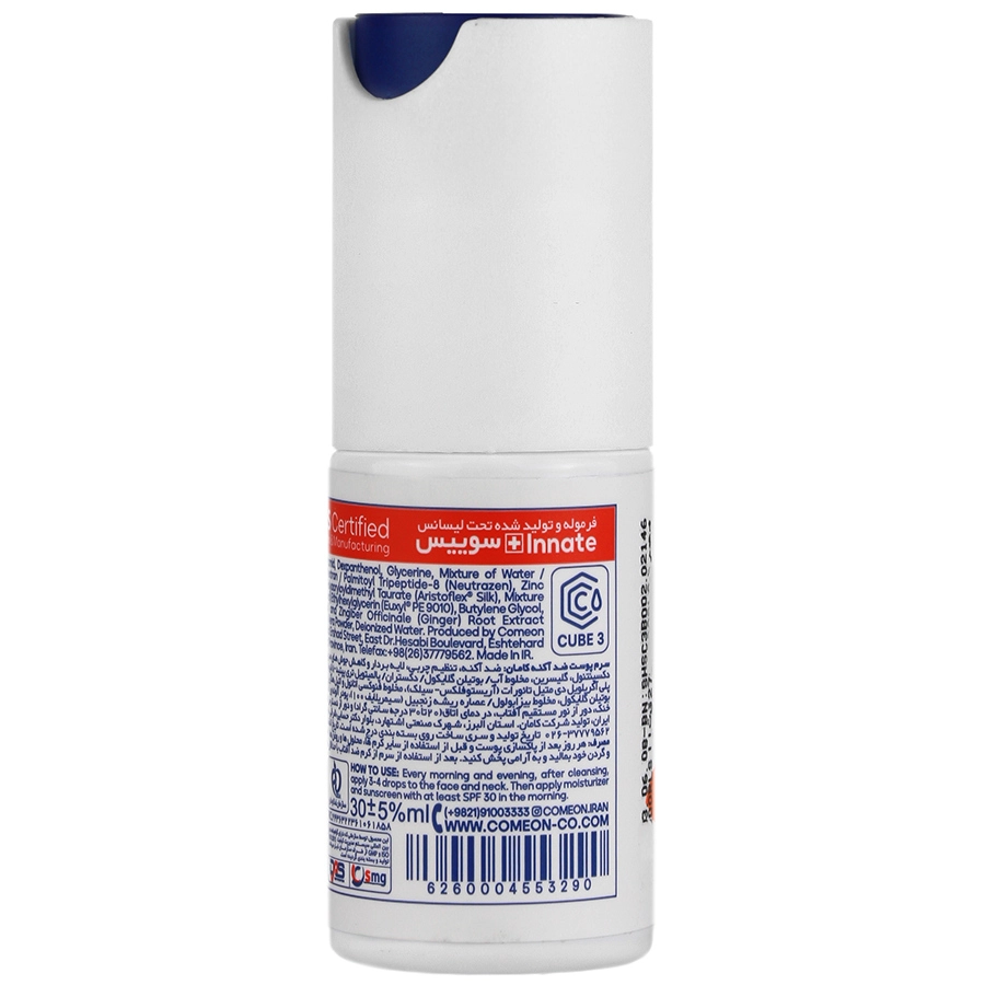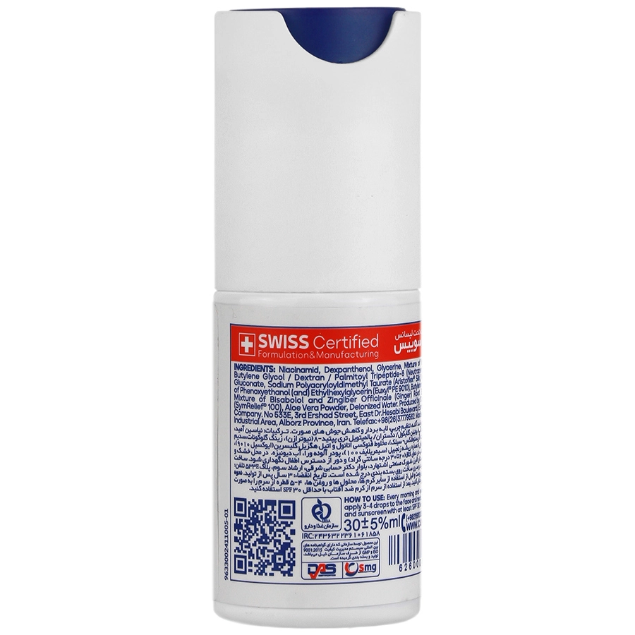 حاوی نیاسین آمید، دکسپانتنول، گلیسیرین، زینک گلوکونات، عصاره ریشه زنجبیل، پودر آلوئه ورا