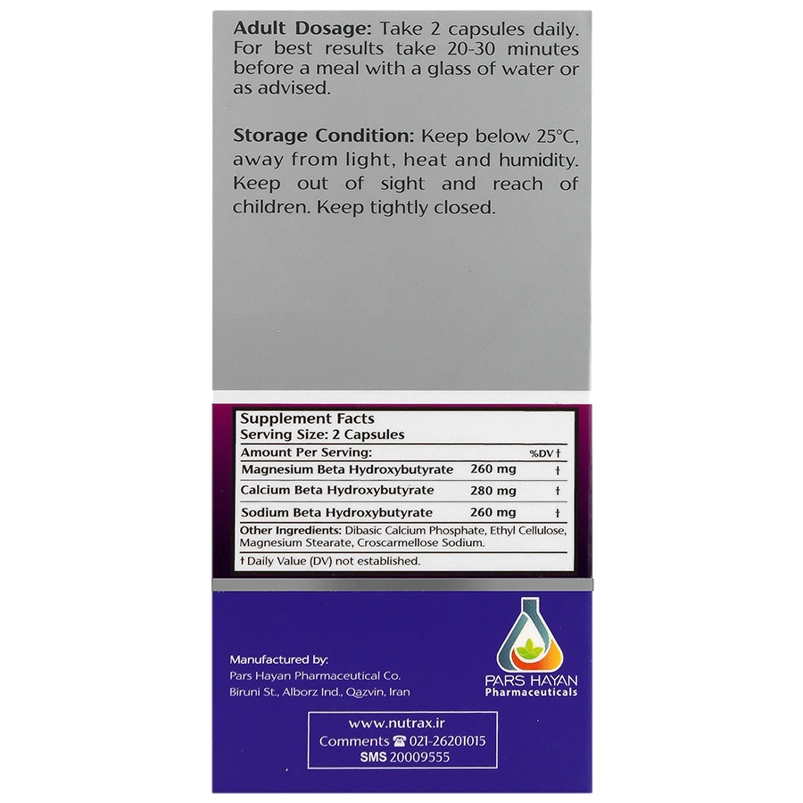 | Sodium Beta Hydroxybutyrate | 260 mg |