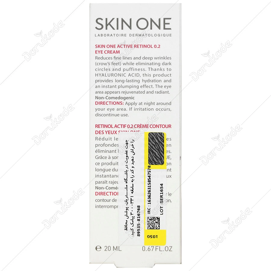 کرم دور چشم مناسب چروک های سطحی پوست اسکین وان ضمن رفع پف و تیرگی سبب کاهش خطوط ریز و چروک های عمقی (خطوط پنجه کلاغی) می شود. این محصول به واسطه اسید هیالورونیک دارای اثر فوری پر کننده خطوط و رطوبت رسانی بادوام است. پوست دور چشم جوان و شفاف می شود.