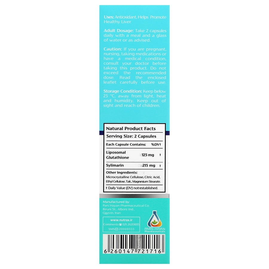 هر کپسول حاوی 125 میلی گرم گلوتاتیون لیپوزومال و 215 میلی گرم سیلیمارین