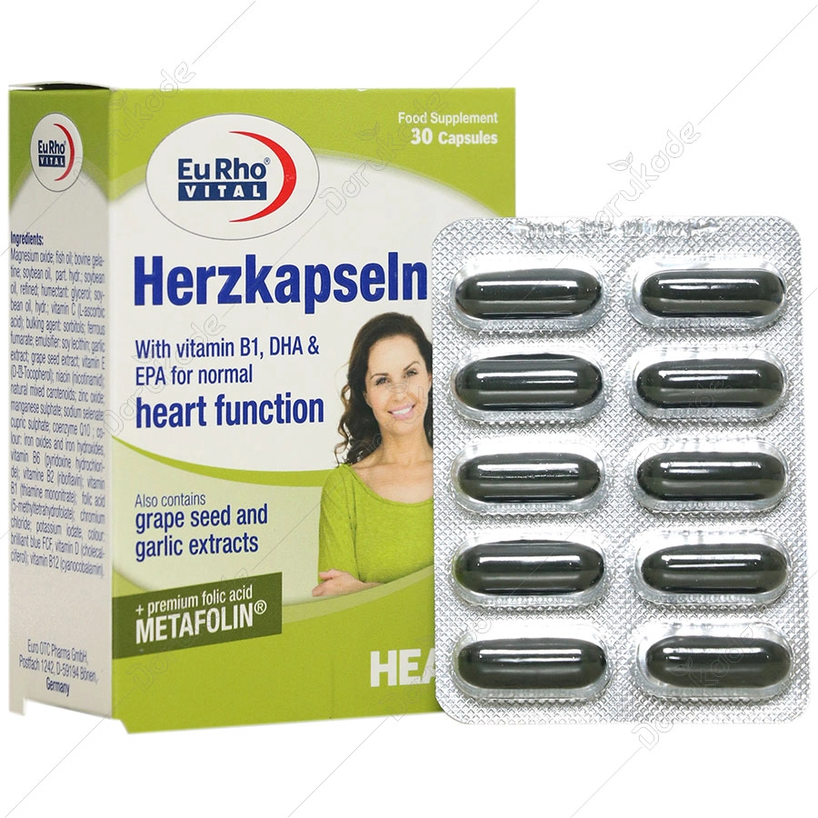 هرتز کپسول یوروویتال حاوی ترکیبی متعادل از اسیدهای چرب امگا-3، ویتامین ها و مواد معدنی به همراه کوآنزیم کیوتن، عصاره دانه انگور، عصاره سیر و مخلوطی از کاروتنوئیدهای طبیعی می باشد.