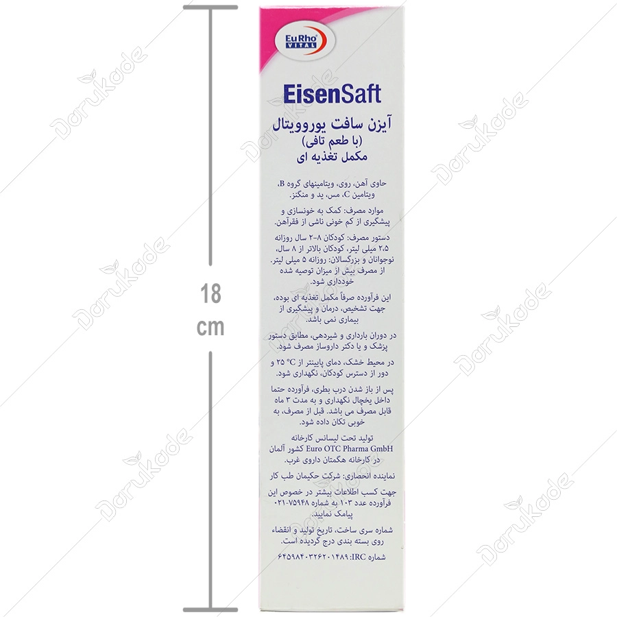 این محصول تولید و بسته بندی شده در ایران و تحت لیسانس یورو ویتال آلمان می باشد.