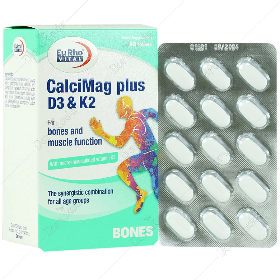 کلسی مگ پلاس D3 و K2 تامین کننده ترکیبی کامل و متعادل از چهار ماده مغذی مهم جهت حفظ سلامت استخوان ها می باشد. کلسیم، منیزیم، ویتامین D3 و K2 در حفظ سلامت استخوان ها نقش دارند. به علاوه ویتامین D در جذب و مصرف کلسیم و حفظ سطح طبیعی آن در بدن موثر است. منیزیم، کلسیم و ویتامین D در تقویت عملکرد عضلانی و منیزیم در کاهش ضعف، خستگی و تعادل الکترولیت های بدن نقش دارد.
