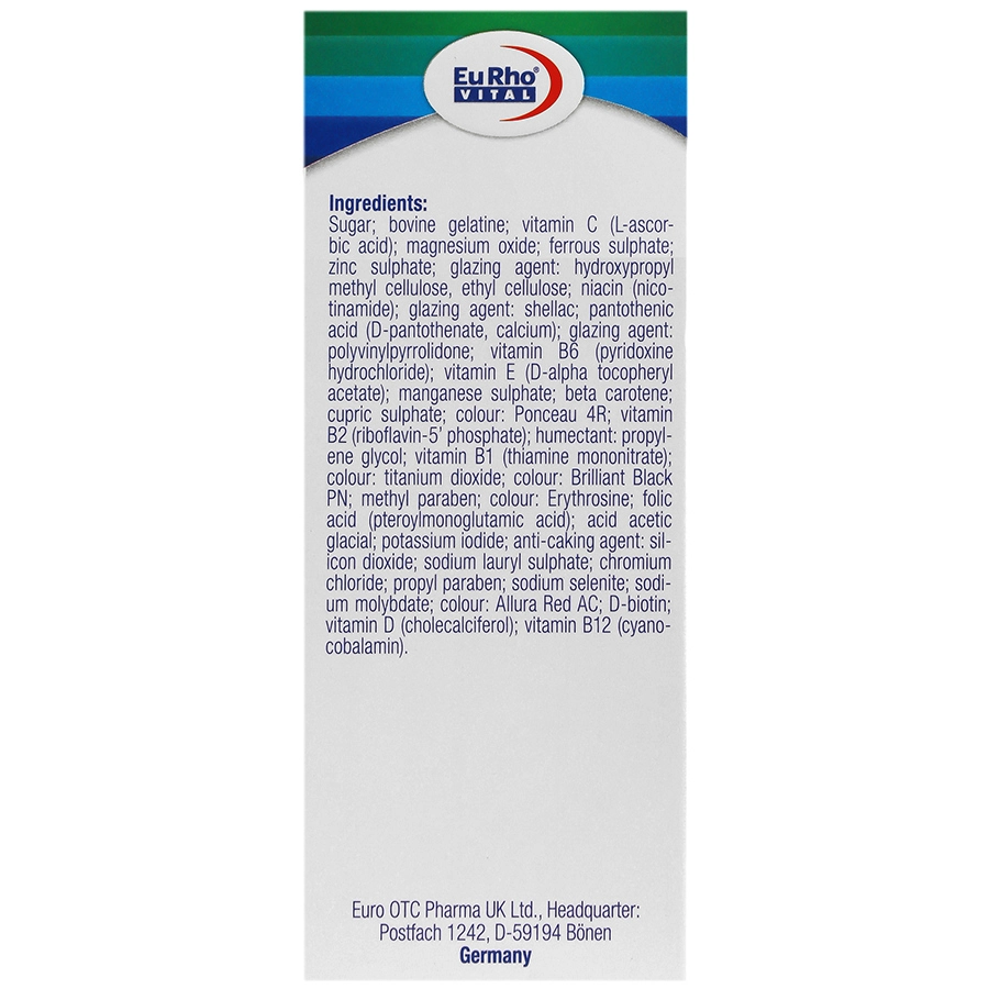 حاوی بتاکاروتن، ویتامین های D3 ،B12 ،B6 ،B5 ،B2 ،B1 ،C ،E ،K2 فولیک اسید، نیاسین، بیوتین، ید، آهن، منیزیم، مس، منگنز، کروم، سلنیوم، زینک و مولیبدن
