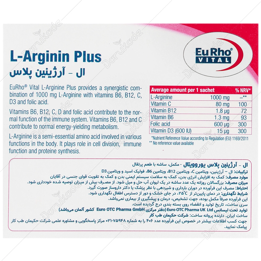 ساشه ال آرژنین پلاس، حاوی آرژنین به همراه ویتامینهای B6، B9، B12، C و D3
