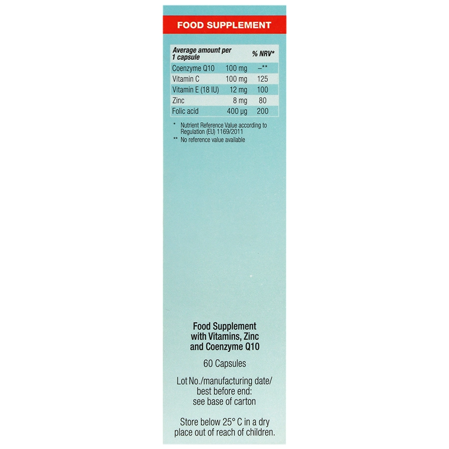 حاوی کوآنزیم کیوتن، روی، فولیک اسید و ویتامین های C و E