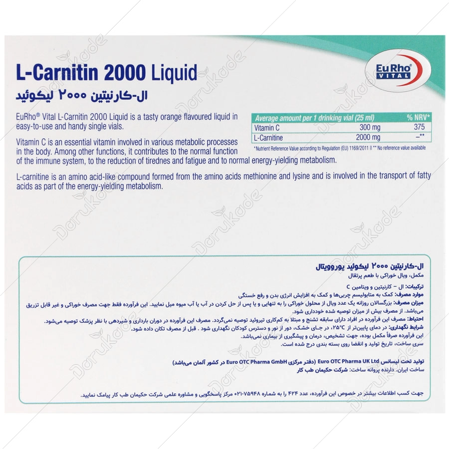 به ازای هر ویال حاوی ال-کارنیتین لیکوئید 2000 میلی گرم و ویتامین سی 300 میلی گرم