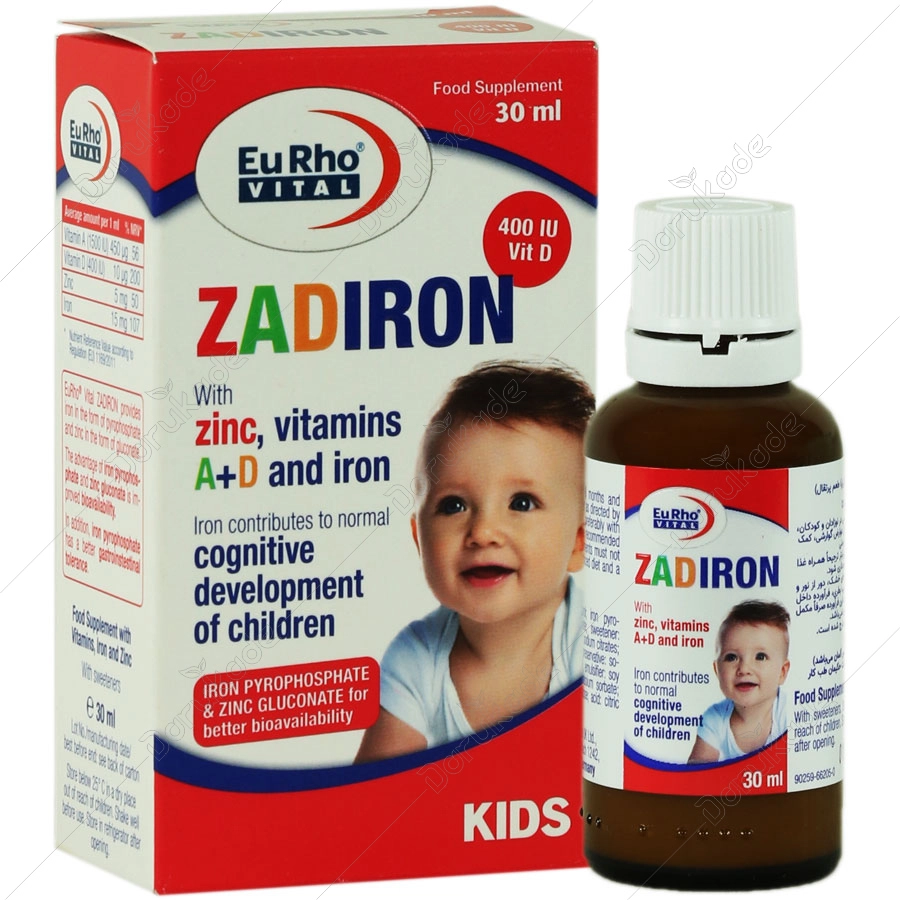 قطره زادیرون یوروویتال تامین کننده ترکیبی کامل از ویتامین های A و D به علاوه آهن و روی می باشد. این فرآورده حاوی آهن با ملح پیروفسفات و روی با ملح گلوکونات می باشد.