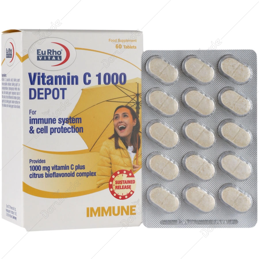 ویتامین C 1000 دپو یوروویتال تامین کننده ویتامین C به میزان 1000 میلی گرم به علاوه 25 میلی گرم سیتروس بیوفلاونوئید در هر قرص می باشد.