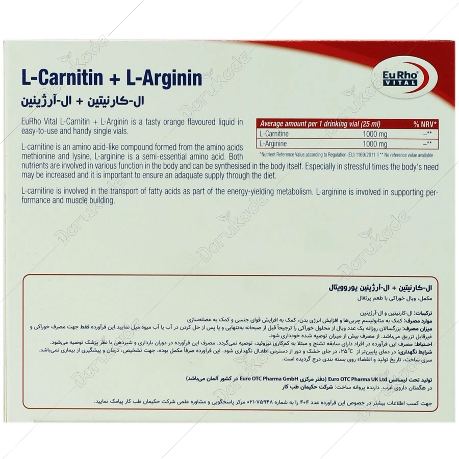 ال کارنیتین و ال آرژنین یوروویتال، حاوی ال کارنیتین تارترات و ال آرژنین هیدروکلراید
