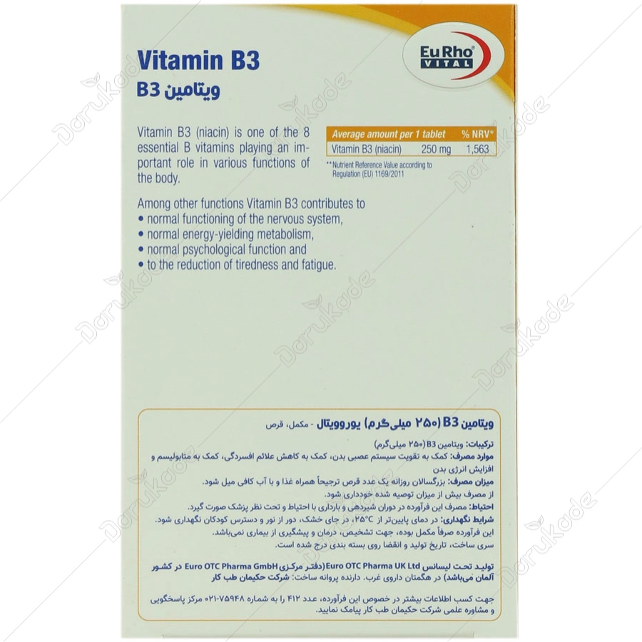 | ویتامین ب3 ( نیاسین ) | 250 mg |
