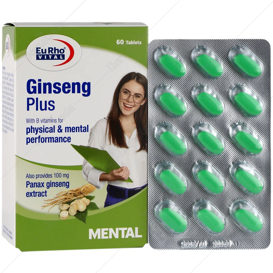 جینسینگ پلاس یوروویتال حاوی ترکیبی متعادل از عصاره جینسینگ به علاوه ویتامین های گروه B و ویتامین C جهت تقویت عملکرد فیزیکی و ذهنی بدن میباشد