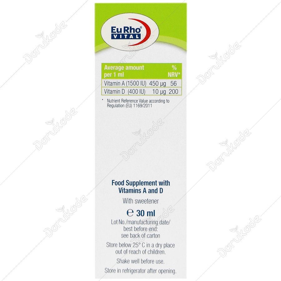 دارای 1500 واحد ویتامین A و 600 واحد ویتامین D در یک میلی لیتر
