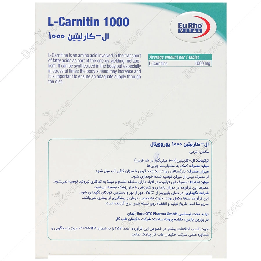 | ال-کارنیتین | 1000 mg |