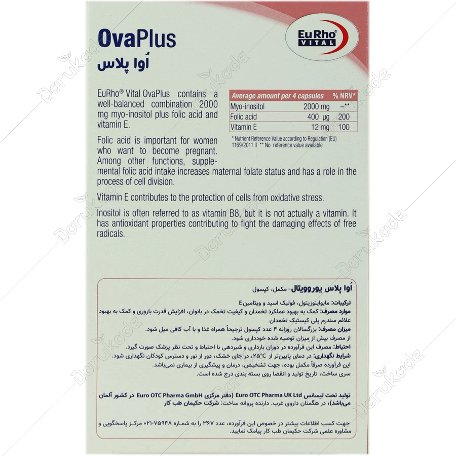 اوا پلاس یوروویتال ترکیبی متعادل از ۲۰۰۰ میلی گرم مایو اینوزیتول به علاوه فولیک اسید و ویتامین E می باشد.