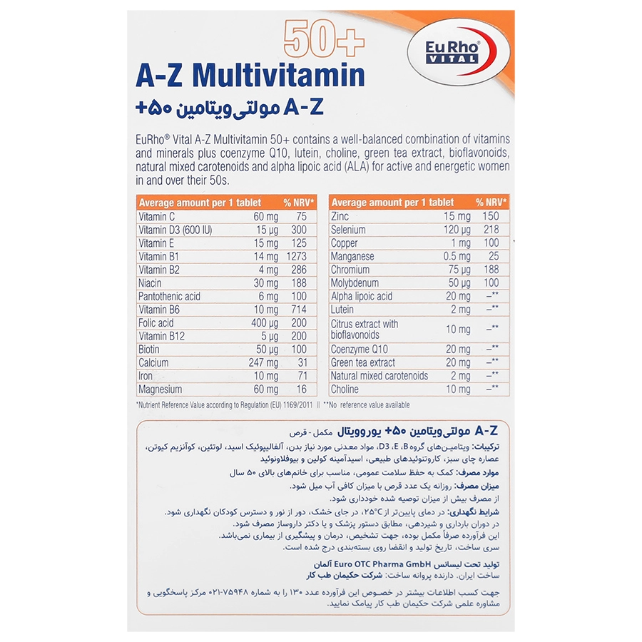 موارد منع مصرف: - مصرف مکمل A-Z مولتی ویتامین +50 در زنان باردار و شیرده توصیه نمیشود.