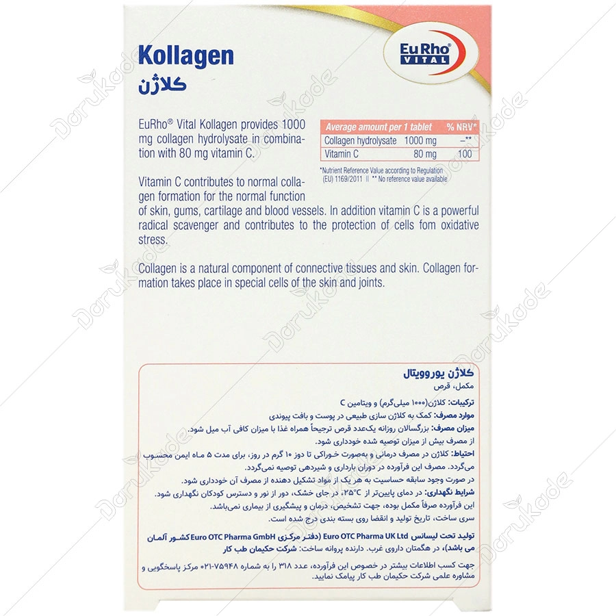 کلاژن 1000 یوروویتال تامین کننده کلاژن هیدرولیزات به صورت ترکیب با 80 میلی گرم ویتامین C می باشد.