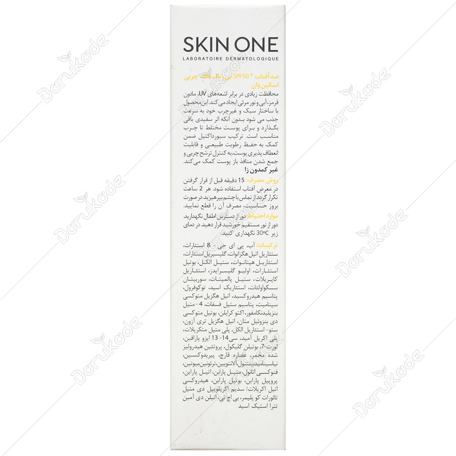 ضد آفتاب +SPF50 بی رنگ فاقد چربی اسکین وان محافظت زیادی در برابر اشعه های UV، مادون قرمز، آبی و نور مرئی ایجاد می کند. این محصول با ساختار سبک و غیر چرب خود به سرعت جذب می شود بدون آنکه اثر سفیدی باقی بگذارد و برای پوست مختلط تا چرب مناسب است. ترکیب سبورداکتیل ضمن کمک به حفظ رطوبت طبیعی و قابلیت انعطاف پذیری پوست، به کنترل ترشح چربی و جمع شدن منافذ باز پوست کمک می کند.