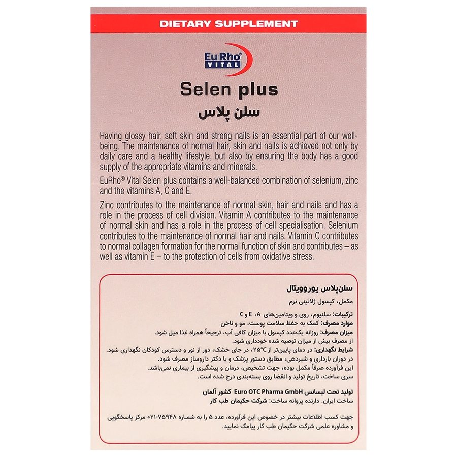 ترکیبات: سلنیوم، روی، ویتامین های E ،A و C