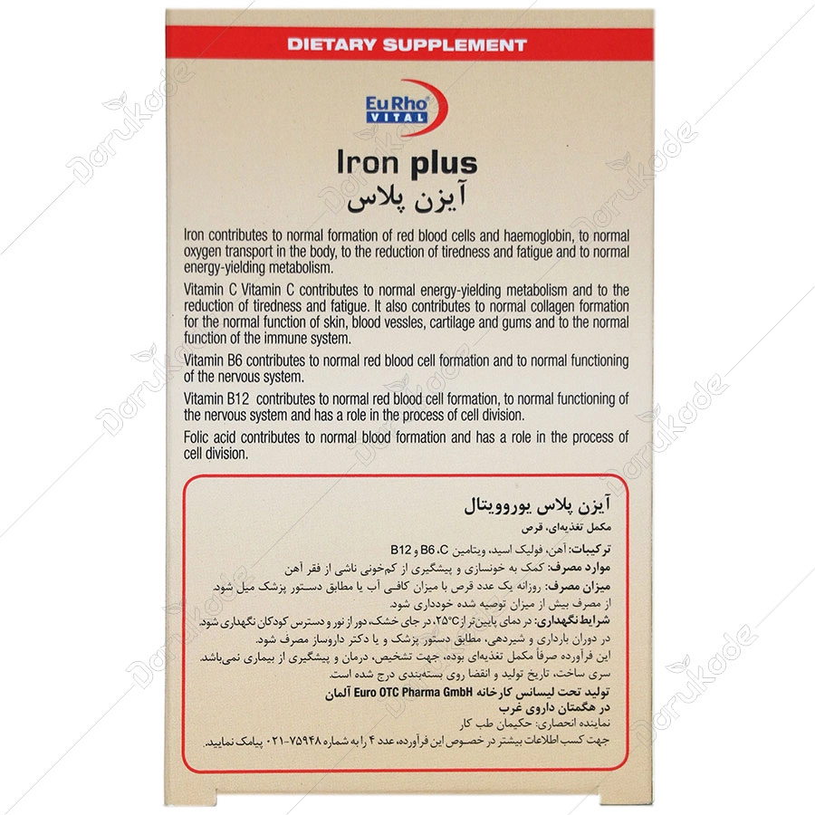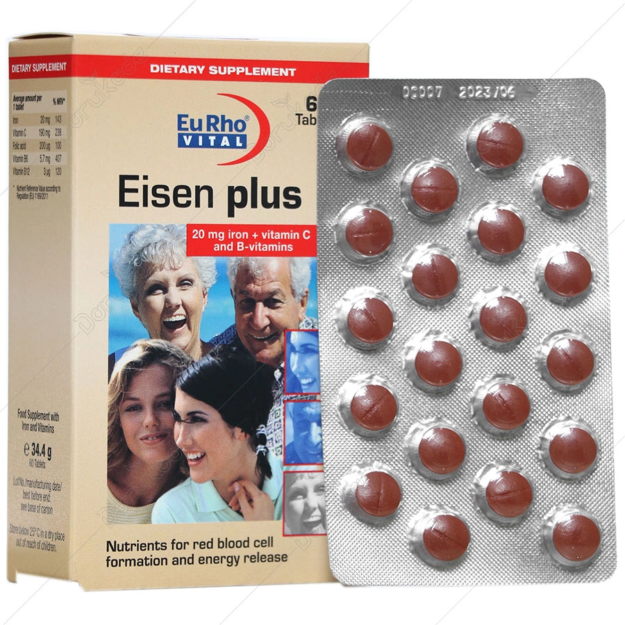 قرص eisen plus حاوی آهن، فولیک اسید، ویتامین های گروه B و ویتامین C