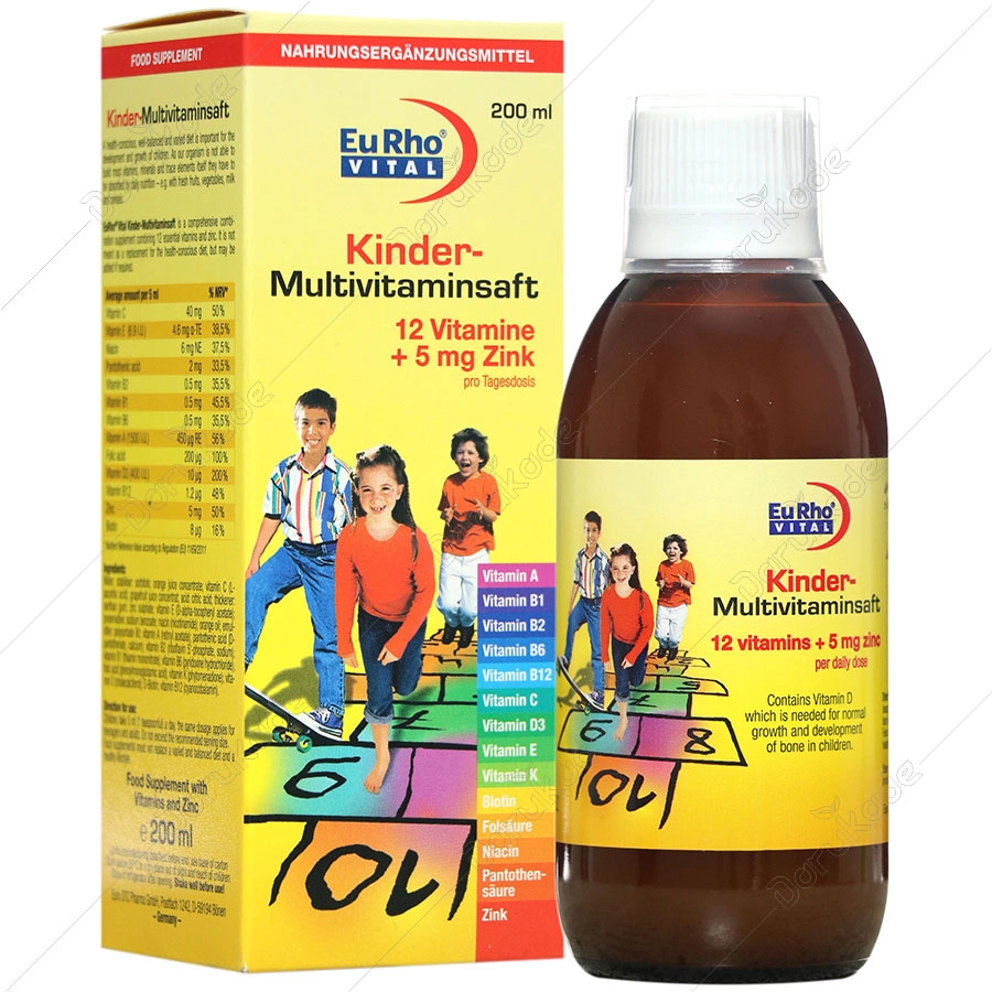 شربت کیندر حاوی روی، ویتامین های K، E، D3، C، B12، B6، B5، B3، B2، B1، A، اسید فولیک و بیوتین