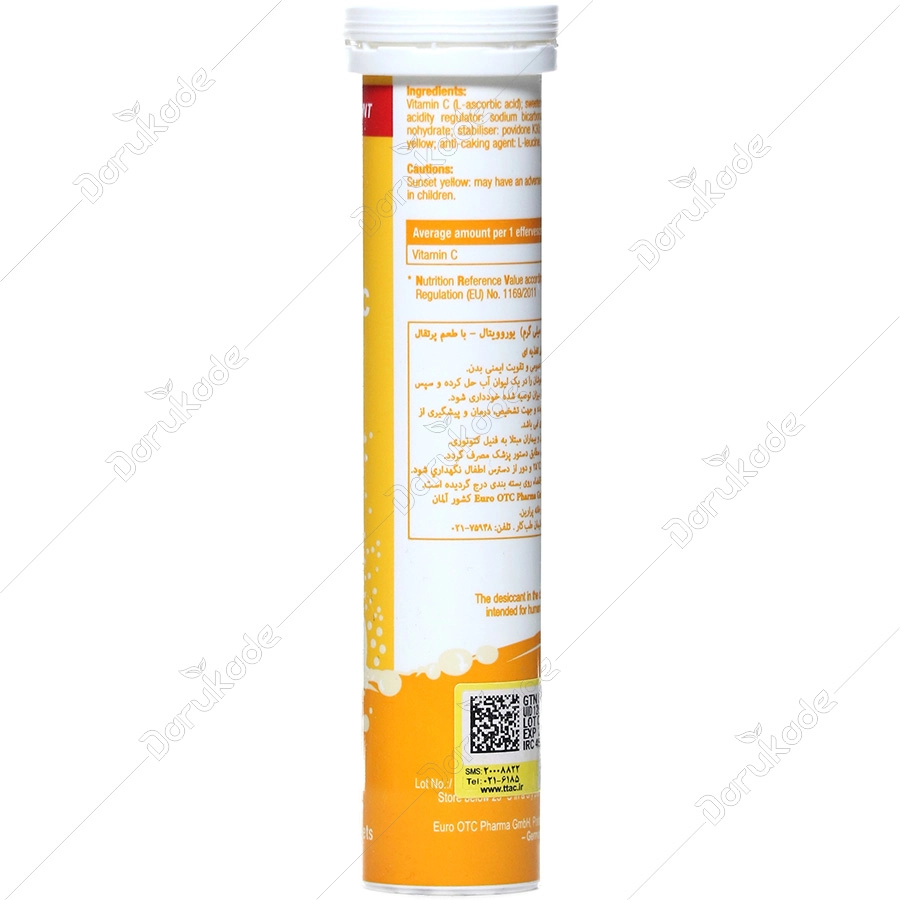 قرص جوشان ویتامین سی 1000 میلی گرم یوروویتال تحت لیسانس شرکت Euro OTC Pharma GmbH کشور آلمان، در کشور ایران در کارخانه پرارین تولید میشود.