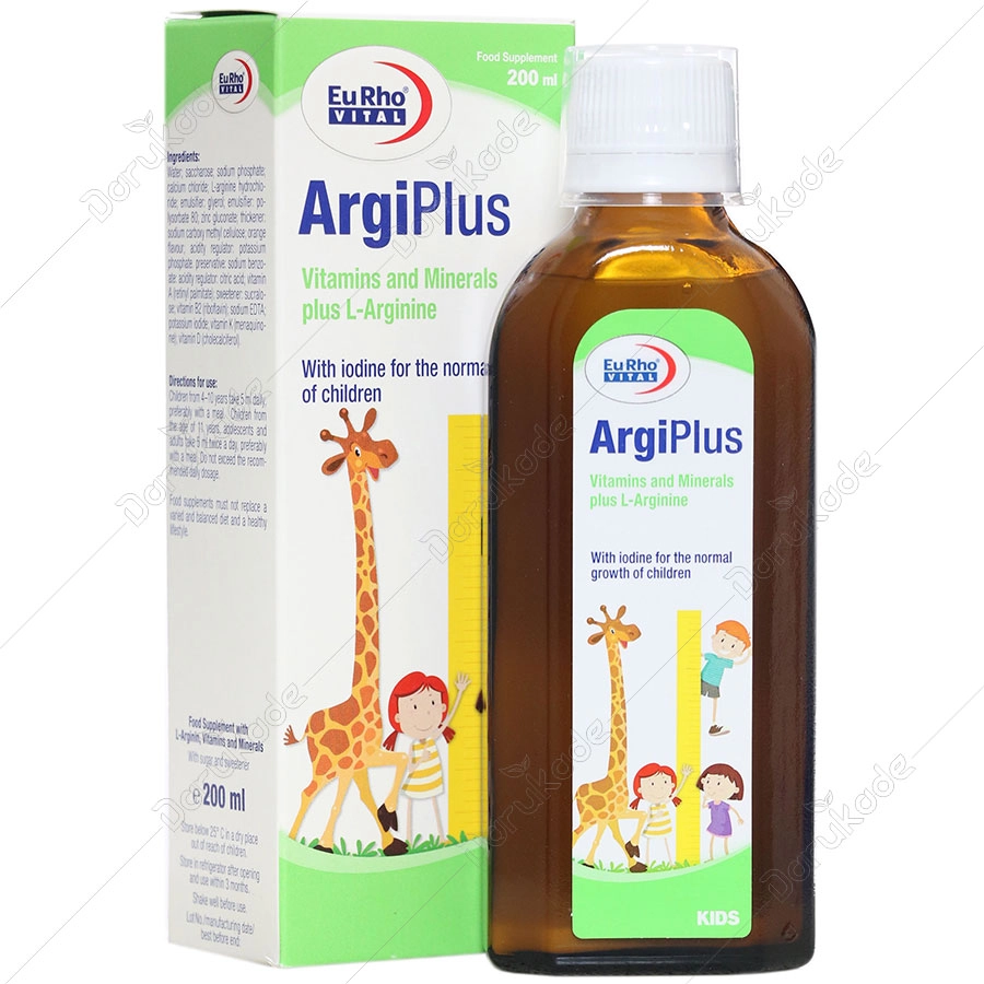 شربت آرژی پلاس حاوی ال-آرژنین، روی، کلسیم، فسفر، ید، ویتامین B2، D3، A و K2