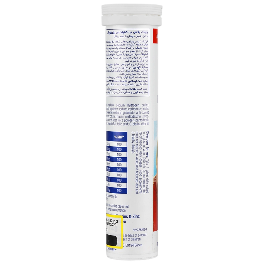 حاوی ویتامین های B1 ،B2 ،B3 ،B5 ،B6 ،B12، ویتامین سی، روی، بیوتین، فولیک اسید، پانتتونیک اسید و نیاسین