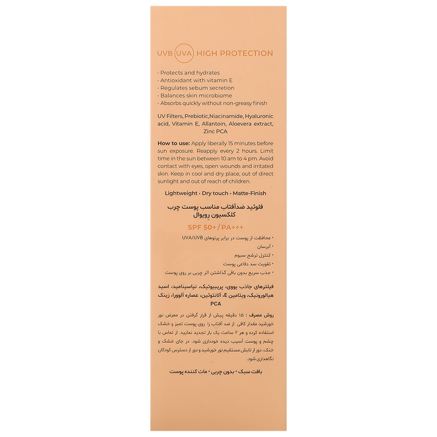 حاوی فیلترهای جاذب یووی، پریبیوتیک، نیاسینامید، اسید هیالورونیک، ویتامین E، آلانتوئین، عصاره آلوورا، زینک PCA