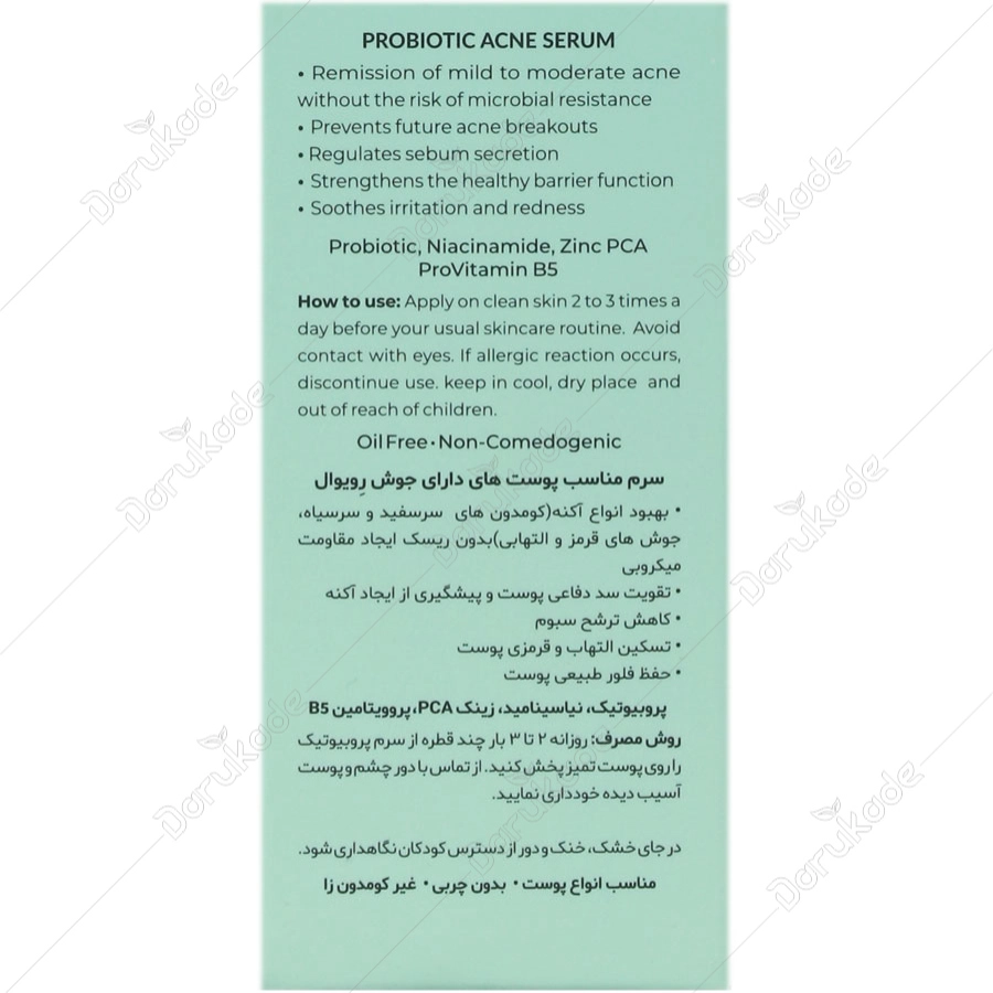 حاوی پروبیوتیک، نیاسینامید، زینک PCA، پروویتامین B5