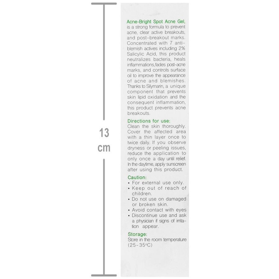 پوست را کاملا تمیز کنید. روزی یک تا دوبار ناحیه آسیب دیده را با یک لایه نازک اسپات ژل آکنه برایت بپوشانید. در صورت بروز خشکی یا پوسته شدن پوست، استفاده از این محصول را به یکبار در روز کاهش دهید. پس از استفاده از این محصول در طول روز، از ضد آفتاب استفاده کنید.